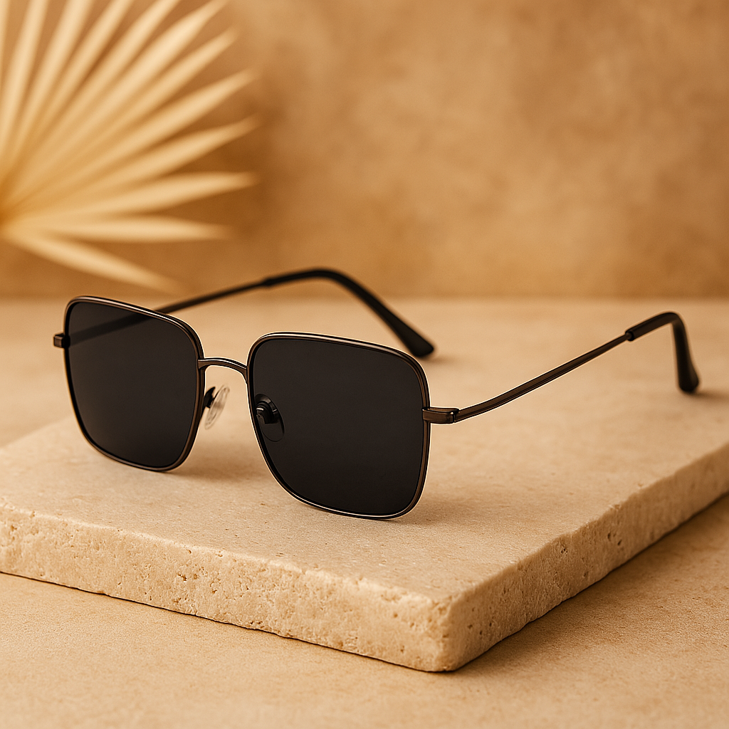 Crafted from premium alloy with angular square lenses, the slim nose bridge and ultra-sleek frame are paired with ergonomic temple arms for all-day comfort. Featuring a lightweight and durable construction with premium UV 400 lenses for ultimate eye protection.